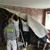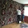 Det var da jeg fikk en strålende ide! Som datter av en gulvlegger kan det ikke bli mer passende enn å lime resten av flossteppet på veggen!