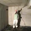 Her er vår mann Dainius igang med å sprøyte tak og vegger i ett parkeringshus. Det er kjapt, effektivt og kjempegøy å bruke malingssprøyte men det krever grundig forarbeid.