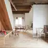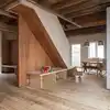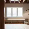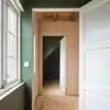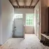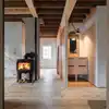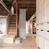 Denne boligen fikk nytt liv og kombinerer en tøff moderne finish med bevaring av originale flotte detaljer. Bjelkene og ny konstruksjon understøtter korset i planen og møbler tegnet til boligen binder sammen nytt og gammelt. Vegger kledd i svartorfiner og furu som er oljet og vokset av våre dykige malere. Vi har også sparklet, tapetsert med fiberduk og malt veggplatene.